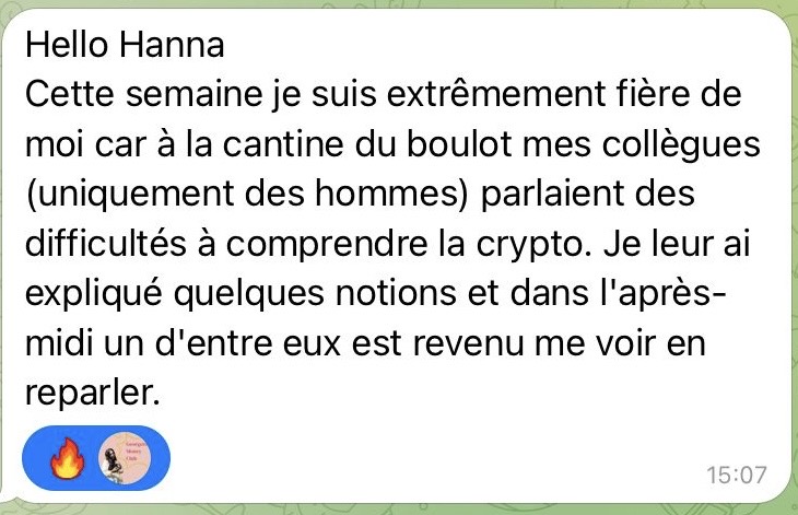 Étant issue de ce système bancaire où l’État et les banques détiennent le monopole de la monnaie, j’ai vu dans la crypto une révolution, une alternative permettant de redonner du pouvoir à chacun.